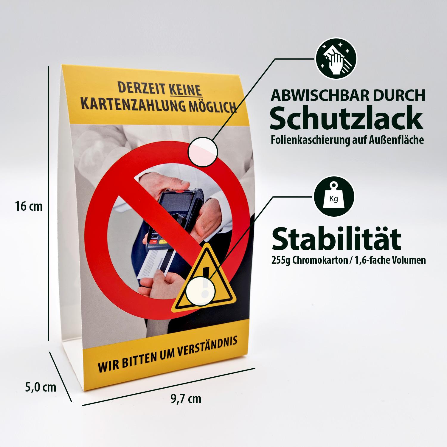 Informieren Sie Ihre Kunden, bei einem Systemausfall, mit diesem Hinweisschild, dass Sie zur Zeit keine Kartenzahlung anbieten können. Jetzt schon online bestellen und im Notfall aufstellen.